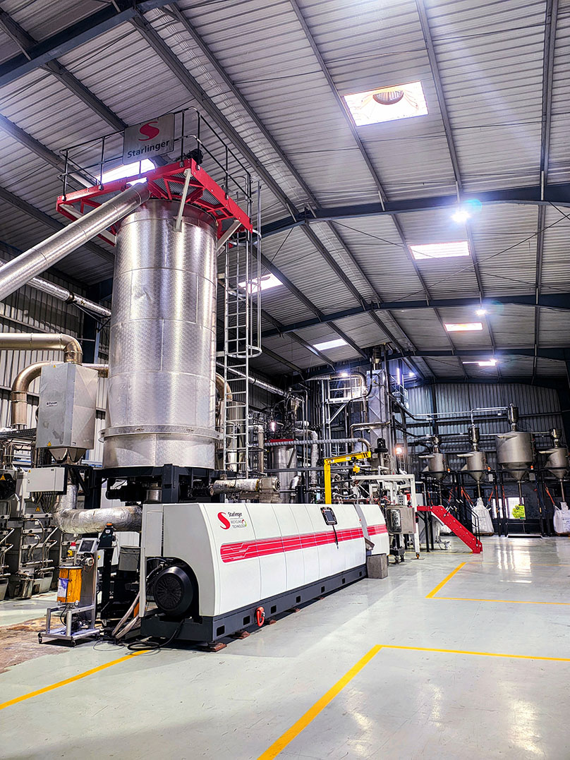 Devolviendo films agrícolas y botellas de detergente con fuertes olores de nuevo al círculo El desecho de plástico de post-consumo, a menudo altamente contaminado, con elevados niveles de humedad y fuerte olor, no es con lo que sueña un reciclador. La empresa portuguesa de reciclado de plástico de post-consumo, Ambiente S.A, ha tomado el reto y produce regranulado de alta calidad sin olores procedente de films agrícolas y botellas de detergente lavados en la línea de reciclado recoSTAR dynamic 165 C-VAC de Starlinger con el objetivo de mantener más productos de plástico en el círculo cerrado. La línea de Starlinger entró en funcionamiento en junio de 2024 en la nueva fábrica de Ambiente en Leiria, al norte de Lisboa, donde la empresa recicla tanto desecho de plástico industrial como de post-consumo. Una gran parte consiste en films agrícolas de LDPE y botellas de detergente de HDPE que Ambiente convierte en granza para aplicaciones de extrusión de film y film soplado. «Es importante para nosotros producir un producto reciclado de alta calidad que se pueda reutilizar para la misma aplicación», dice Paulo Pires, director Gerente de Ambiente S.A. «Nuestro objetivo es establecer una economía circular. Esto significa circularidad dentro de la aplicación respectiva – por ejemplo, tubos de riego se convierten en tubos de riego, film agrícola se convierte en film agrícola, envases alimentarios en envases alimentarios, etcétera. Además, queremos explorar nuevas aplicaciones para otros materiales con altos niveles de contaminación y olor. Para ello, necesitamos eliminar todos los contaminantes lo más profundamente que podamos en el proceso de reciclado. Por esta razón, estamos invirtiendo en las mejores tecnologías disponibles – desde el lavado, extrusión, filtrado hasta el tratamiento del olor. Nuestro objetivo es generar beneficios económicos y medio ambientales, ofreciendo una materia prima para la industria del plástico que sea sostenible a la vez que competitiva, para que la economía circular se convierta en realidad». Granza reciclada con olor reducido La línea de reciclado recoSTAR dynamic 165 C-VAC instalada en Ambiente se caracteriza por la renombrada tecnología de reducción de olor de Starlinger y procesa botellas de detergente de HDPE y films agrícolas de LDPE de post-consumo. «Los films agrícolas se utilizan para varias aplicaciones, por ejemplo en invernaderos, cobertura de cultivos, o silos. Esto supone que los residuos orgánicos estén presentes incluso después del lavado, lo que crea gases en el siguiente proceso de reciclado», explica Paul Niedl, director Comercial de Starlinger recycling technology. «En el caso de aplicaciones de embalaje como botellas de detergente, el olor de su contenido migra al material de embalaje durante su almacenamiento y vida útil. Nuestra tecnología de reducción de olor está diseñada para extraer permanentemente estos olores de forma que el grano producido sea apto para aplicaciones de alto nivel. En lugar de perder la calidad durante el reciclaje se puede reutilizarlo en la misma aplicación, lo que crea circularidad». Para dar cabida a un amplio rango de materiales de entrada, el proceso de reciclado completo se puede adaptar individualmente según la contaminación e intensidad del olor del material alimentado y las especificaciones requeridas del grano producido. El proceso comienza con el corte y homogeneización del material en el alimentador SMART feeder, donde el material es también calentado hasta que alcanza su punto de operación ideal. Los olores altamente volátiles son extraídos durante esta etapa del proceso. Después de la extrusora principal, la mezcla pasa por filtros de mezcla continuos donde se extraen los contaminantes sólidos para que no puedan liberar olores durante las siguientes etapas del proceso. En el siguiente módulo C-VAC se incrementa la superficie de mezcla al 300 %, alcanzando una eficiencia de desgasificación extremadamente elevada. Esto asegura que incluso los olores más profundamente impregnados se extraen de formapermanente. En la etapa final, la granza reciclada producida es tratada en la unidad de extracción de olores “PCU” (Pellet Conditioning Unit) al final del proceso de reciclado, para extraer los olores más persistentes. Esto asegura un regranulado con un olor permanentemente mejorado que se puede utilizar para fabricar un amplio rango de productos de plástico. Pionero portugués en el reciclado El origen de Ambiente S.A. se remonta a 1953 cuando su compañía madre, la fábrica portuguesa de producción de film de plástico, Fabrica Leiriense de Plasticos, ya reciclaba su desecho de producción interno. Desde principios de 1970 también se procesaba desecho de plástico recogido externamente, incluyendo materiales importados de otros países europeos como Alemania, convirtiéndose en el pionero portugués de reciclado de desecho de plástico doméstico en los años ꞌ90. La dirección de la empresa se dio cuenta que el reciclado de plástico constituye un pre-requisito fundamental para un futuro sostenible, lo que le llevó a crear la empresa Ambiente S.A. en 1989. Desde 2000 está registrada como empresa independiente, empleando actualmente a 36 personas y reciclando 7000 toneladas de desecho de post-consumo, industrial y doméstico por año. El rango de productos de Ambiente comprende granza reciclada de LDPE y HDPE para aplicaciones de extrusión, soplado e inyección que suministra a clientes en Europa y norte de África. Para más información visite www.ambiente-sa.com. Acerca de Starlinger recycling technology Starlinger recycling technology es una división de la compañía Austríaca Starlinger & Co GmbH, líder mundial en el mercado de maquinaria y líneas completas para la producción de embalaje de tejido de plástico. Desde hace más que 35 años Starlinger recycling technology proporciona soluciones de maquinaria para el recic