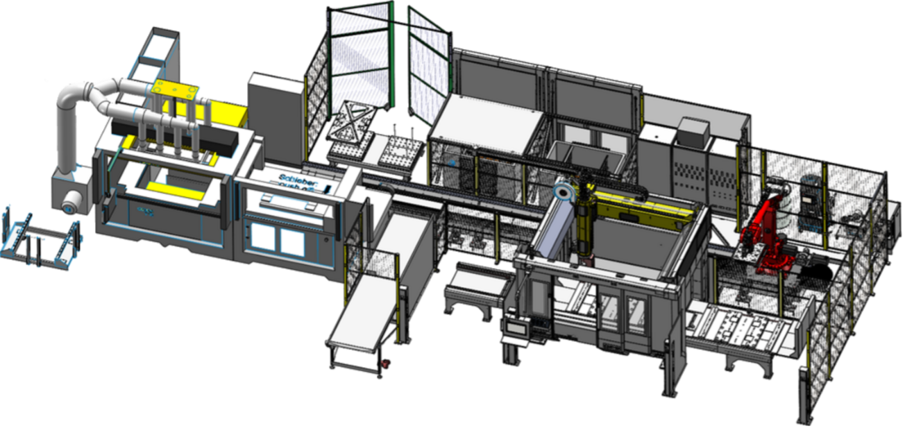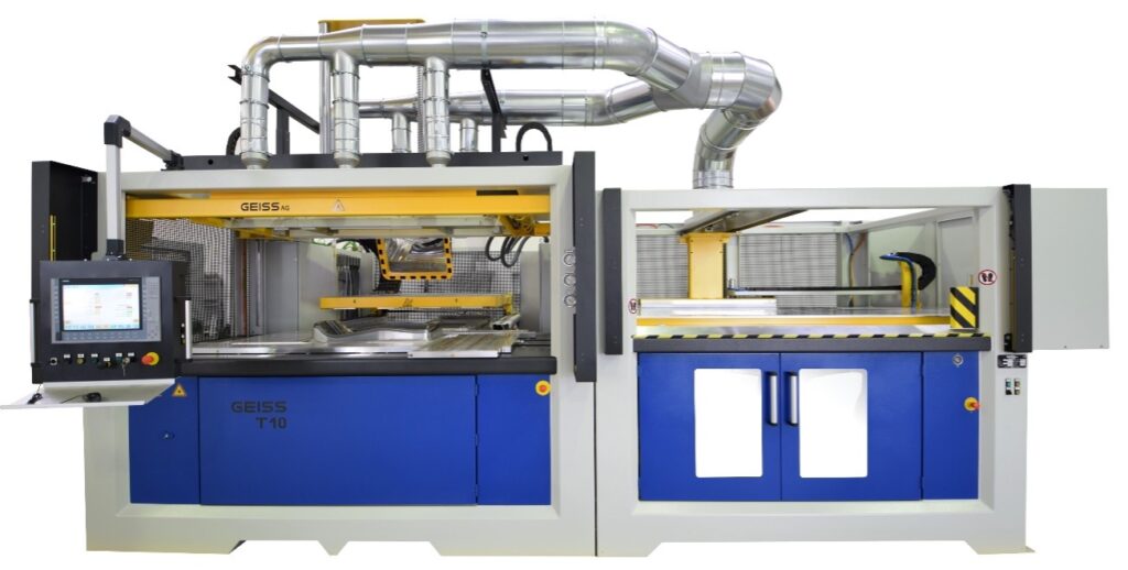 Geiss ofrece también soluciones llave en mano de sistemas de termoconformado en línea con centros de mecanizado incluyendo sistemas de alimentación automáticos y apilado posterior.
